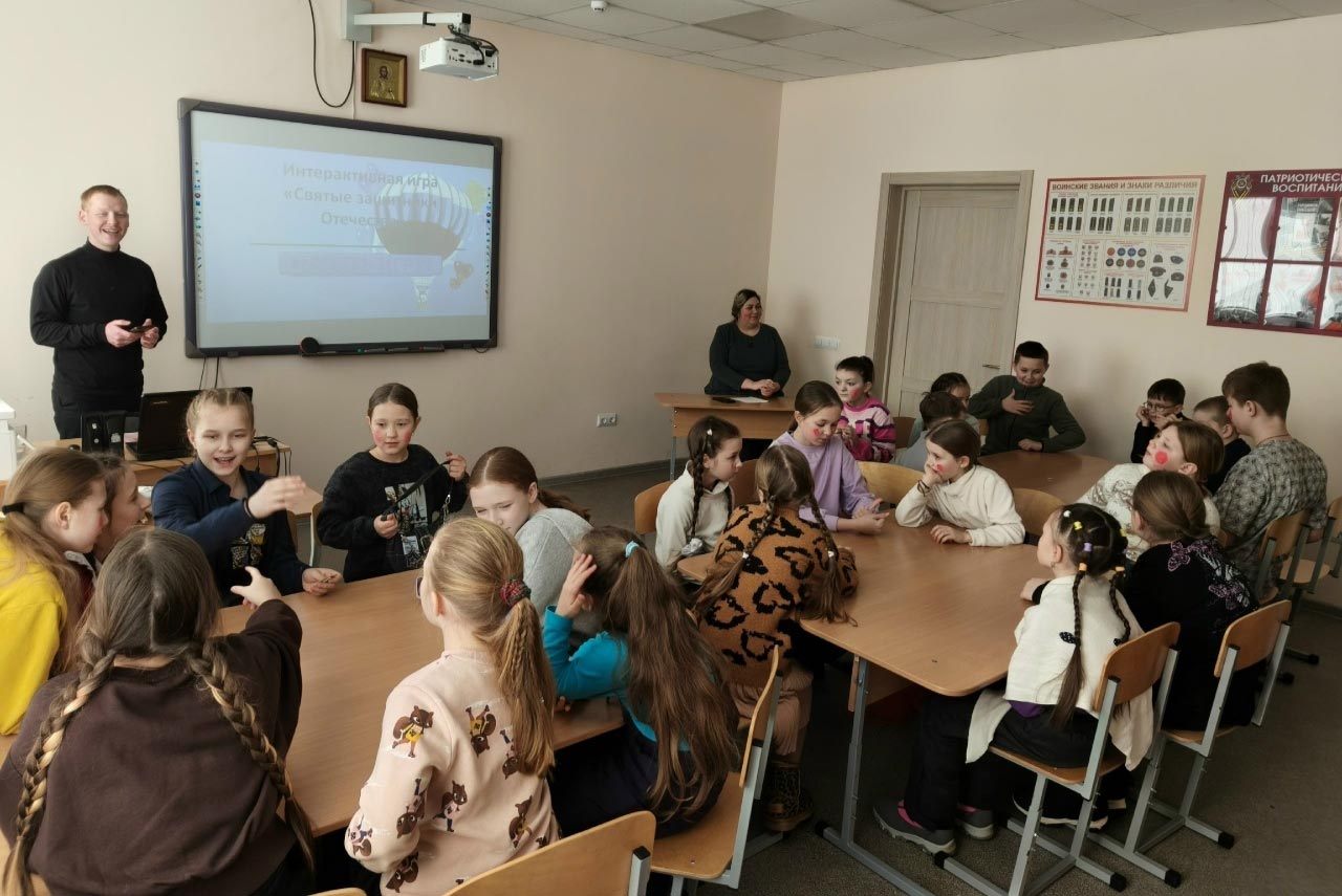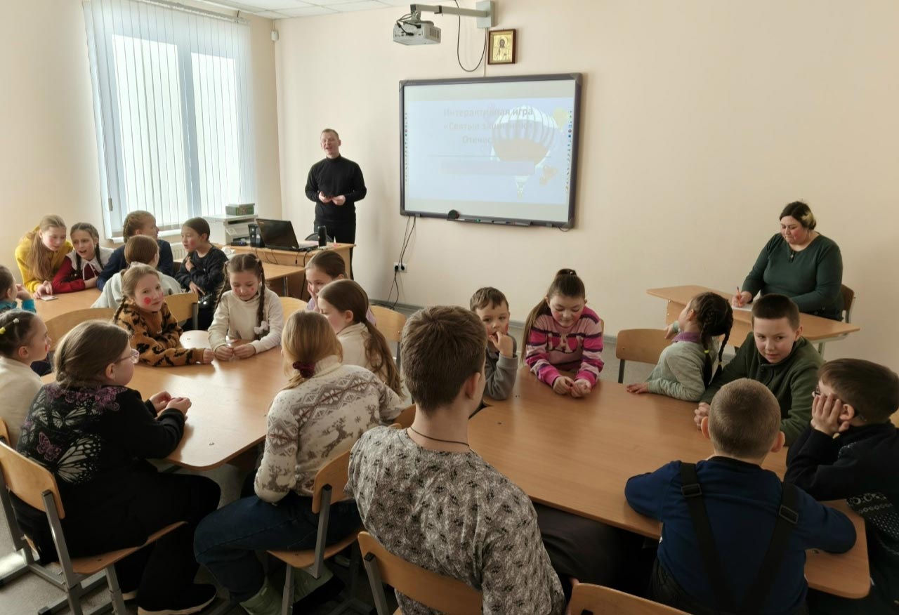 Преподаватель Духовно-просветительского центра Александр Александрович Дюкин в ходе игры поведал детям о великих святых воинах Церкви: “Георгий Победоносец, Димитрий Солунский, Иоанн Воин, князь Владимир, Илия Муромский, Александр Невский, Димитрий Донской, Фёдор Ушаков – это самые известные христиане, посвятившие свою жизнь военному ремеслу”.