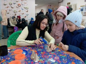 На протяжении всего времени для гостей Духовно-просветительского центра работали мастер-классы по изготовлению сувениров из подручных материалов, в которых с удовольствием участвовали дети.