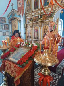 Владыка Всеволод совершил Божественную литургию в сослужении духовенства Никольского собора. Богослужение прошло при большом стечении молящихся, которые с трепетом и благоговением следили за каждым моментом литургии.